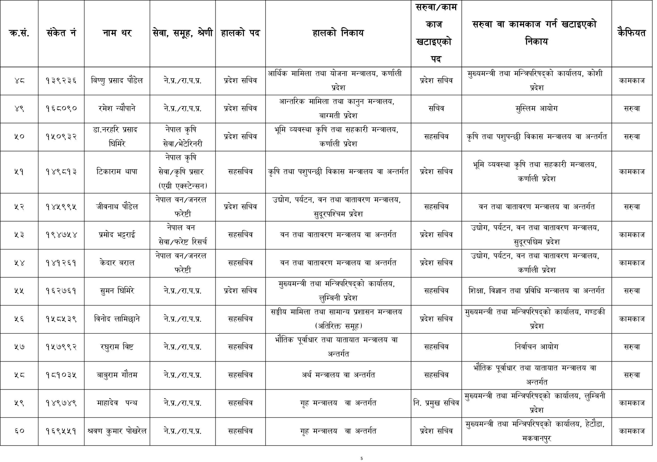 संघीय मामिला तथा सामान्य प्रशासन मन्त्रालयले गरेको सिफारिस अनुसार मन्त्रिपरिषद् बैठकले वैशाख २७ गते उनीहरूको सरुवा गरेको मन्त्रालयले जनाएको हो ।