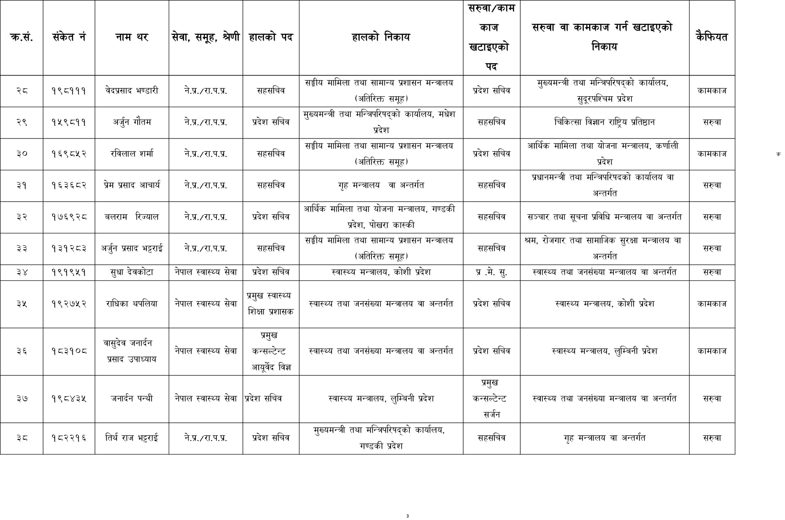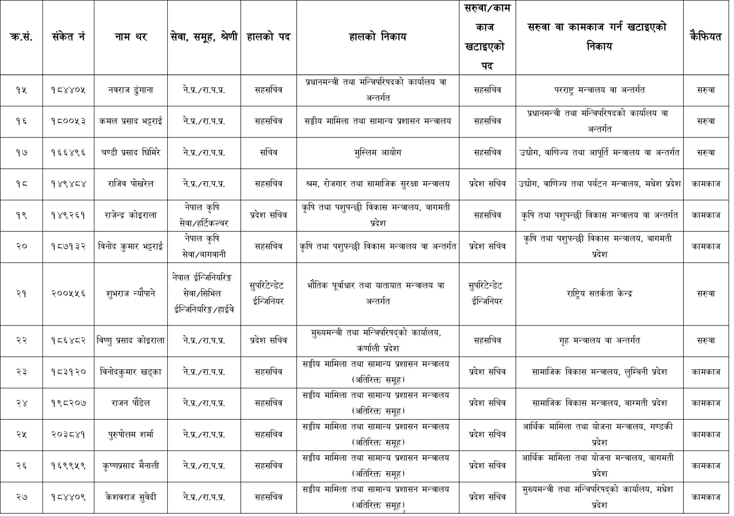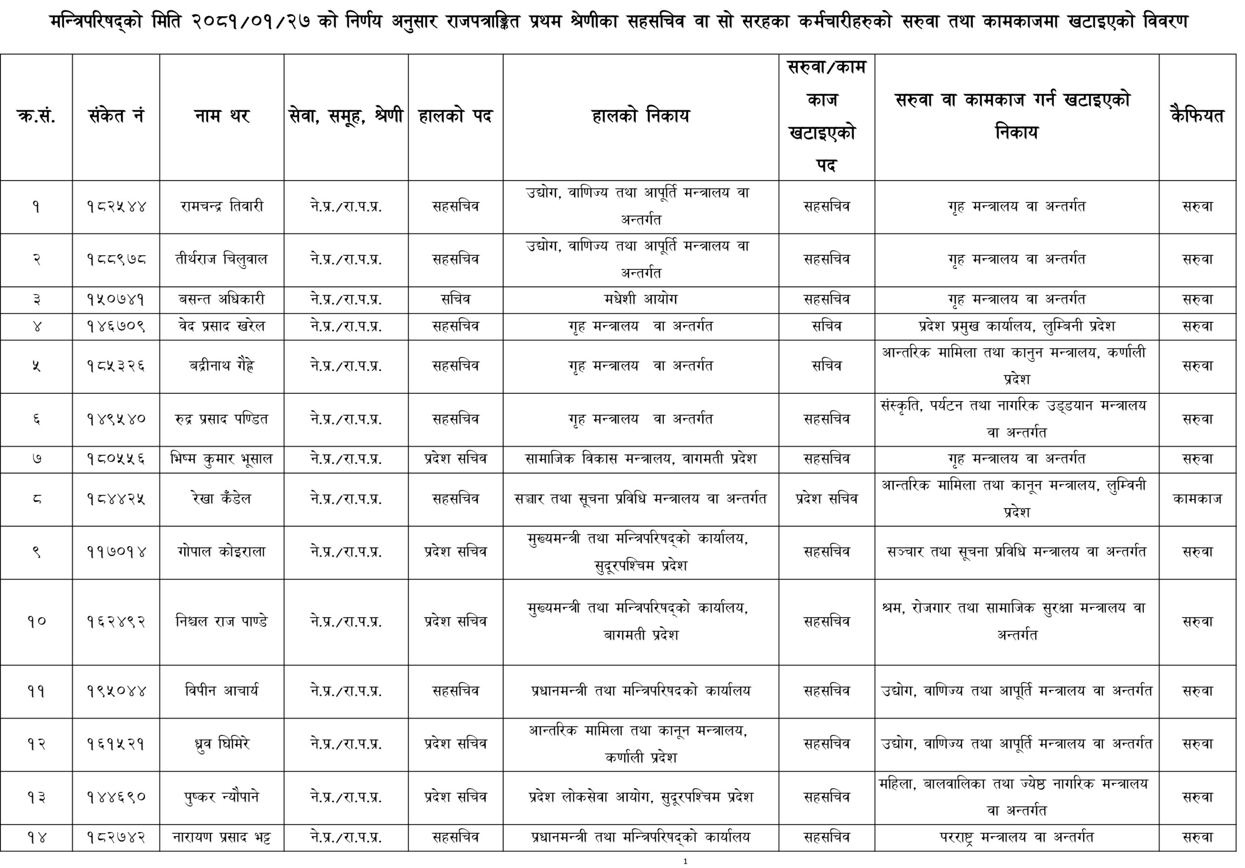 संघीय मामिला तथा सामान्य प्रशासन मन्त्रालयले गरेको सिफारिस अनुसार मन्त्रिपरिषद् बैठकले वैशाख २७ गते उनीहरूको सरुवा गरेको मन्त्रालयले जनाएको हो ।
