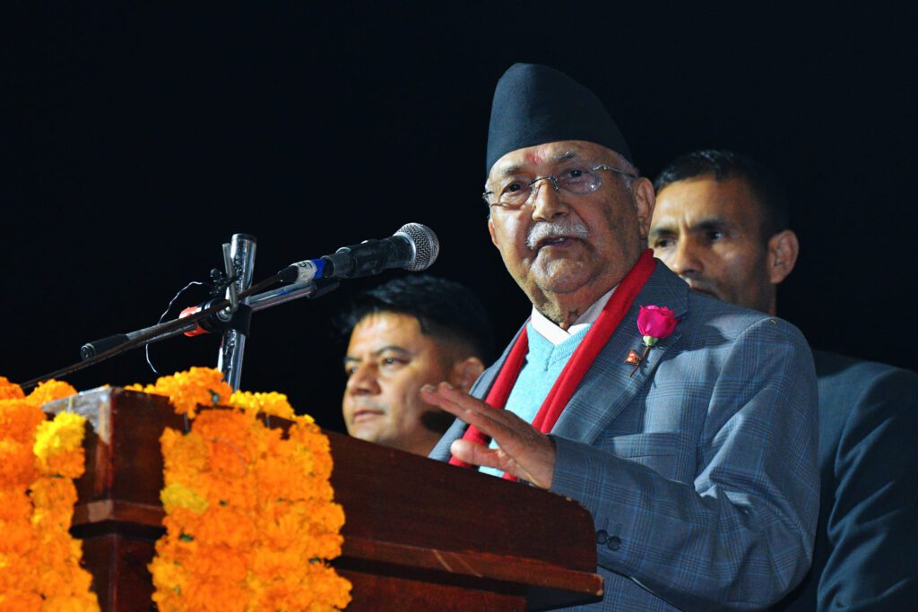 अध्यक्ष ओलीले बट्टारको कार्यक्रमलाई सम्बोधन गर्दै प्रतीक्षा, स्वागत र सम्मानप्रति धन्यवाद ज्ञापन गरे । अध्यक्ष ओलीले देशको राजनीतिमा अन्योलता र अराजकता व्याप्त रहेको र अर्थतन्त्र जर्जर रहेको यथार्थ बताए ।