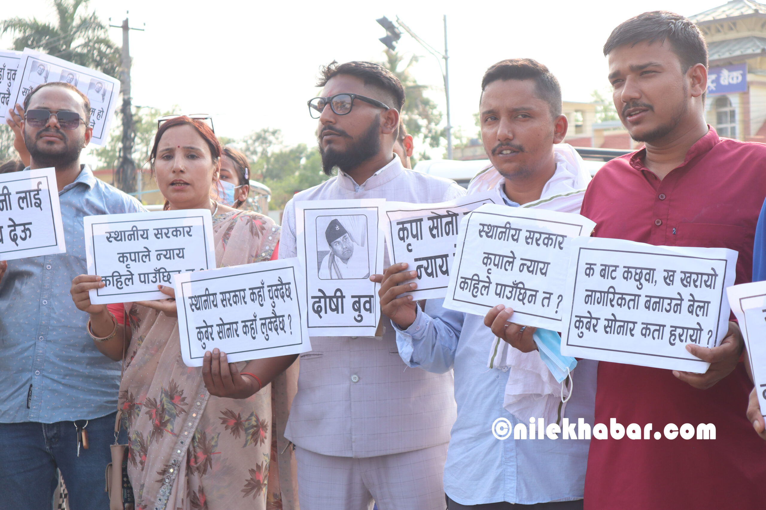 धम्बोझी चोकमा देखिएको दृश्यमा स्थानीय सरकार कृपाले न्याय कहिले पाउँछिन त ?, कृपा सोनीलाई न्याय देऊ, दोषी बुबा खुलेआम पीडित बालिका गुमनाम, चुप लागेर बस्दैनौं न्याय मर्न दिदैँनौं, सरकारी निकाय देखाउ ईच्छा खै त? बालिकाको सुरक्षा लगायतका शब्दहरु लेखिएका प्ले कार्डहरु प्रर्दशन गरिएको हो ।