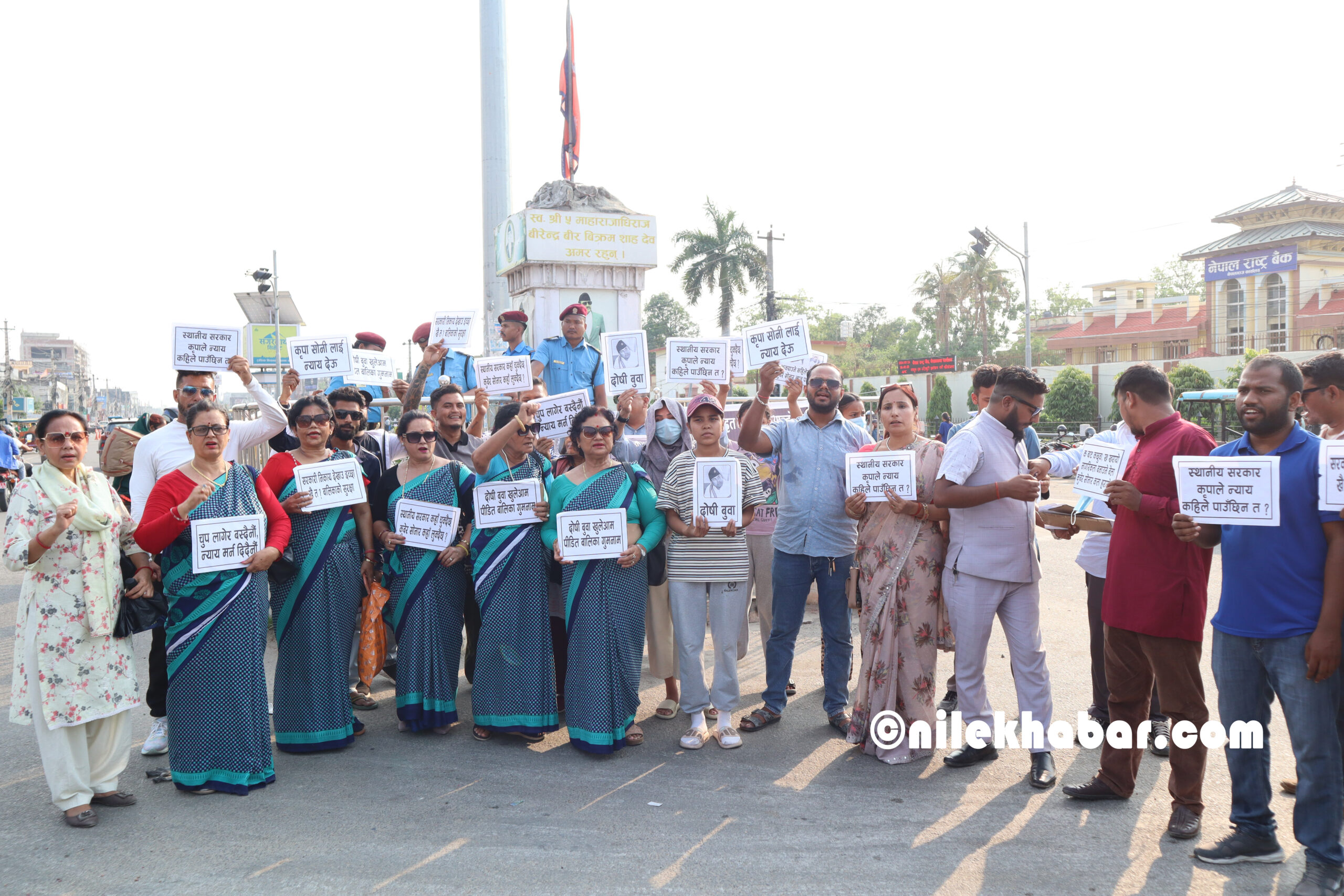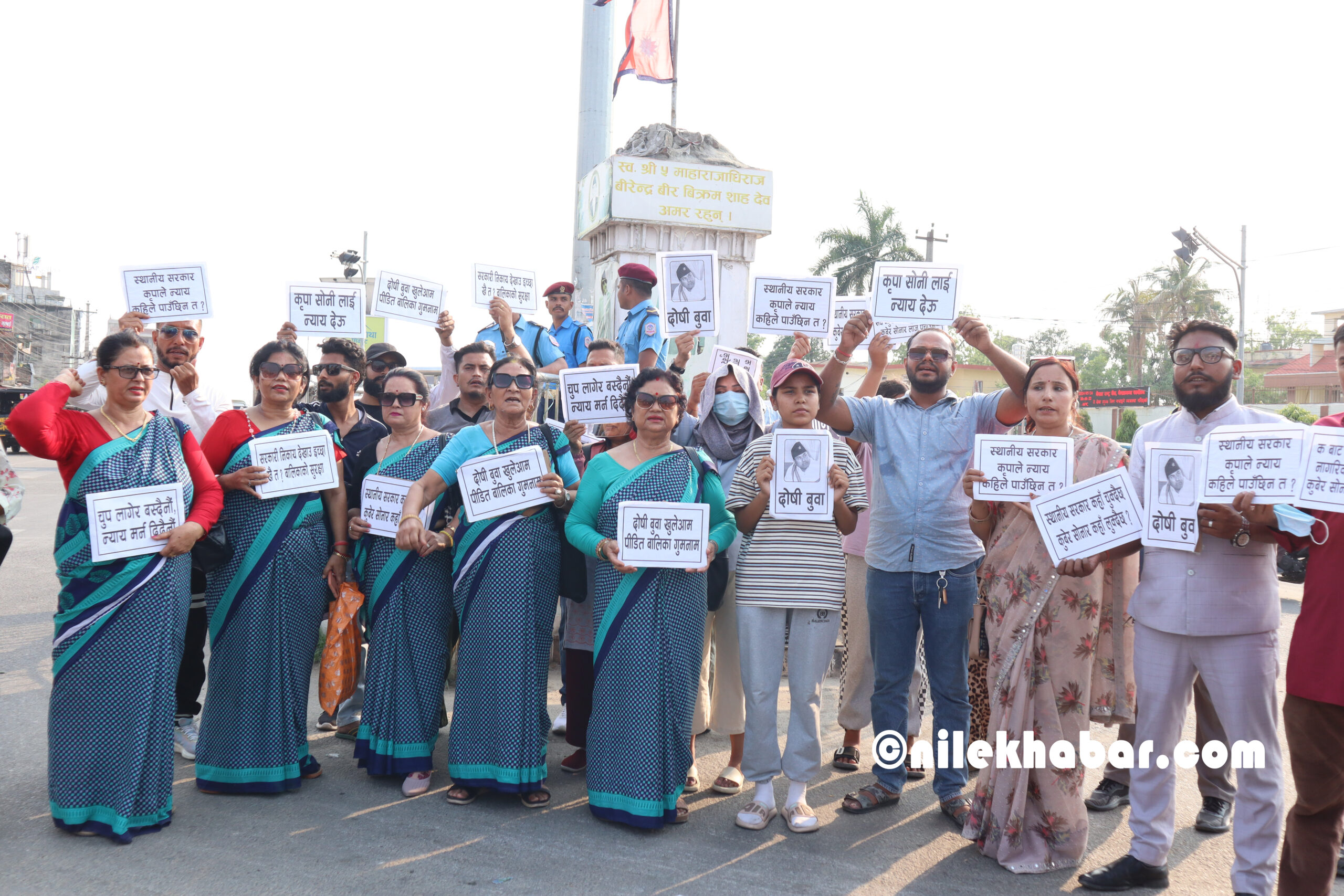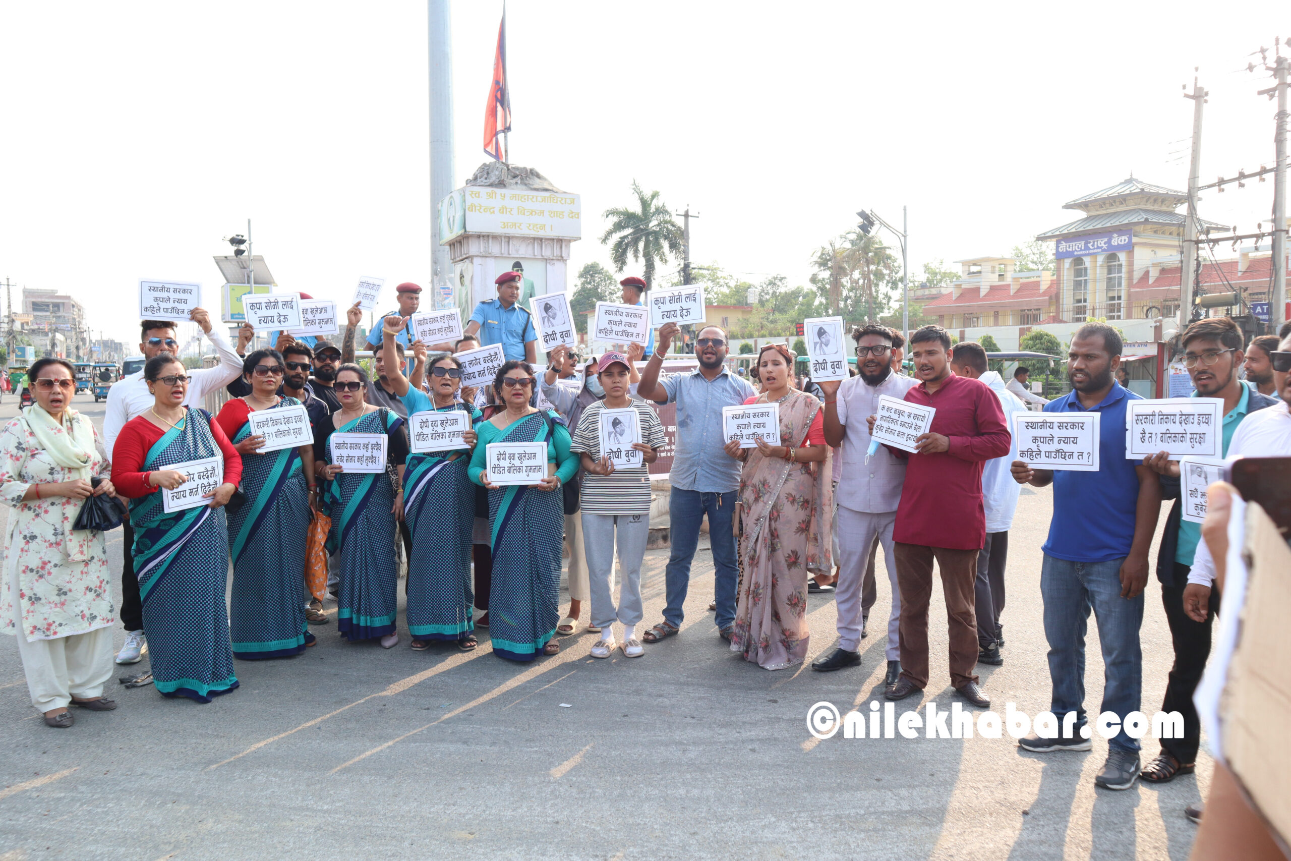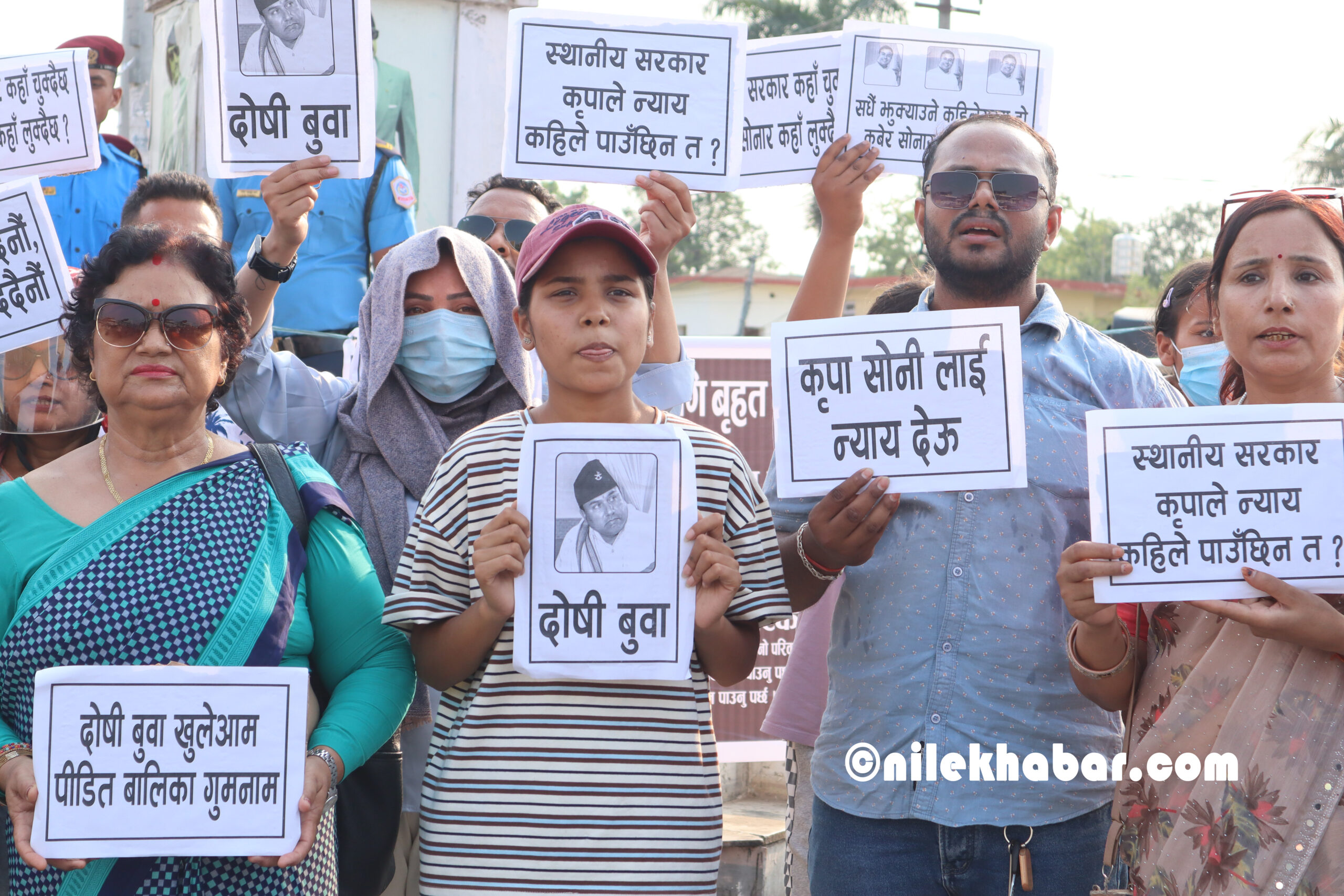 धम्बोझी चोकमा देखिएको दृश्यमा स्थानीय सरकार कृपाले न्याय कहिले पाउँछिन त ?, कृपा सोनीलाई न्याय देऊ, दोषी बुबा खुलेआम पीडित बालिका गुमनाम, चुप लागेर बस्दैनौं न्याय मर्न दिदैँनौं, सरकारी निकाय देखाउ ईच्छा खै त? बालिकाको सुरक्षा लगायतका शब्दहरु लेखिएका प्ले कार्डहरु प्रर्दशन गरिएको हो ।
