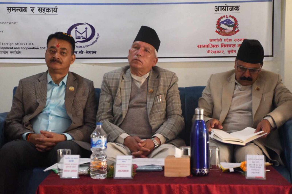 उनले कणर्ालीको भौगोलिक कठिनाइ, सामाजिक, आर्थिक, सांस्कृतिक परिवेश, विभेद र हिंसाजन्य समस्याले मानसिक स्वास्थ्यको समस्या बढ्दै गएपनि सरकार त्यसको निवारणका कार्यनीति बनाएर काम गर्न लागेको बताए ।