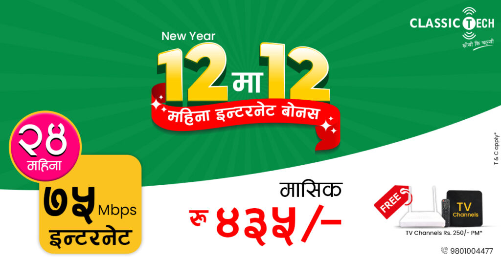 २६ पुष, बाँके । देशकै अग्रणी तथा ठुलो नेटवर्क सेवा प्रदायक कम्पनी क्लासिक टेकले १२ मा १२ अफर सार्वजनिक गरेको छ।